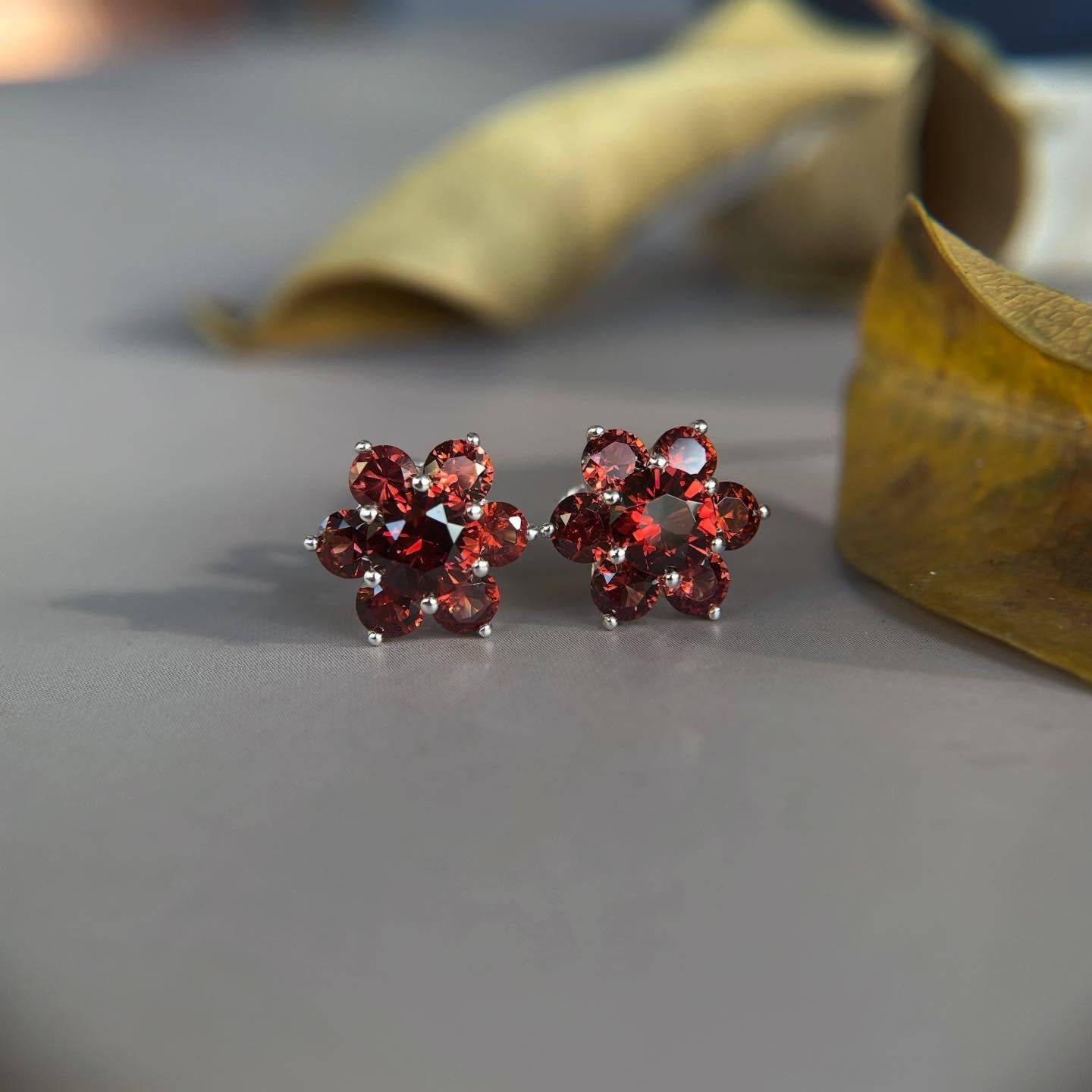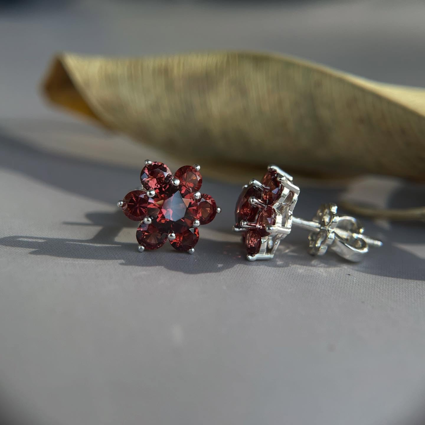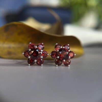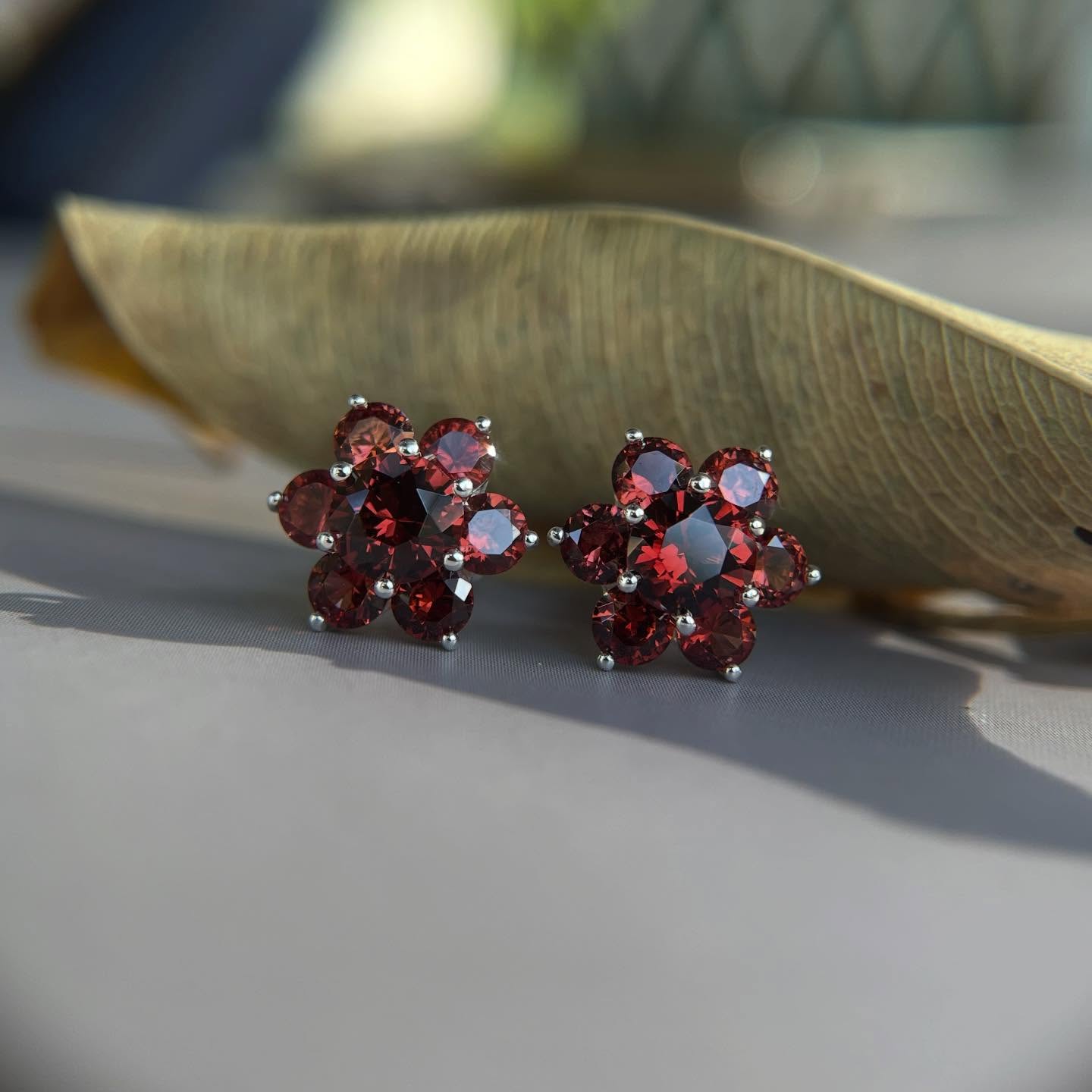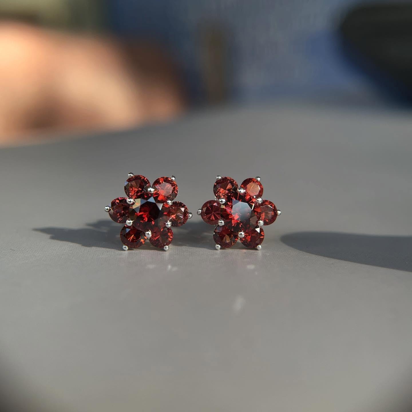 –Thiết kế hoa 6 cánh đầy nữ tính, mỗi viên garnet đều sáng lấp lánh, lên tai nổi cực kỳ.